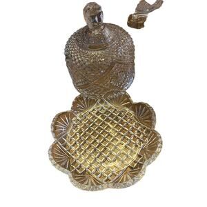 Vintage Avon Fostoria Diamond Cut Glass Dome Cover Butter Cheese Dish Circa 1970