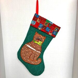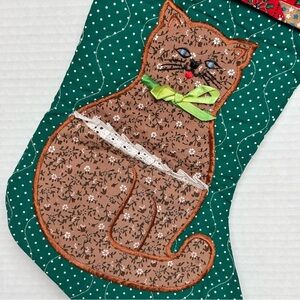 Vintage Avon Calico Cat Quilted Christmas Stocking.