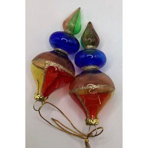 Vintage Avon Glass Ornaments Set 2 Red Blue Green Gold Glitter