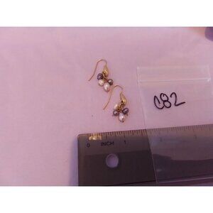 Vintage Avon Gold Tone Drop Dangle Cluster Earrings Purple & White Faux Pearls