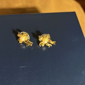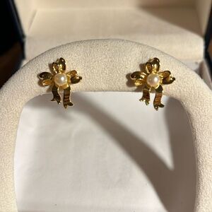 Vintage Avon Gold Tone Pearl Ribbon Bow Pierced earrings.
