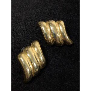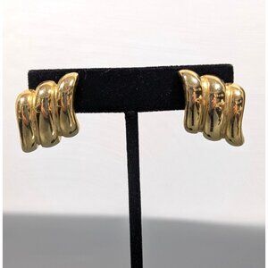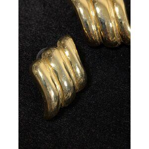 Vintage Avon Gold Tone Ribbed Bold Statement Drop Earrings Asymmetrical