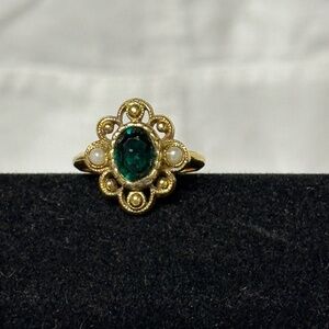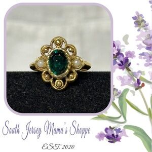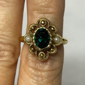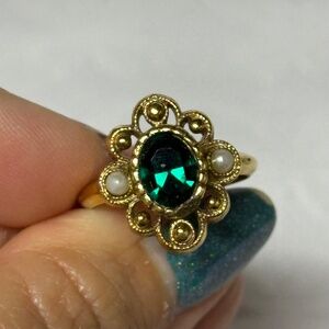 Vintage Avon Gold Tone Ring With Faux Emerald And Pearls Size 5
