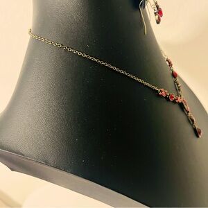 Vintage Avon Golden Red Y Gold Tone & Red Colors Necklace & Earrings Set