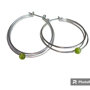 Vintage Avon Green Cat's Eye Tear Drop Necklace Stretch Bracelet Hoop Earrings
