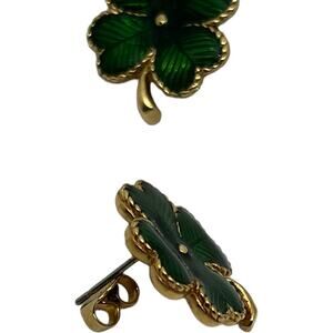 Vintage Avon Green Gold Shamrock Clover Earrings 1990s St. Patrick's Day Jewelry