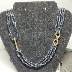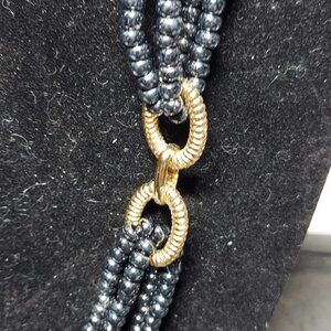 Vintage Avon Louis Fd multi strand dark gray glass beads and goldtone hook rings