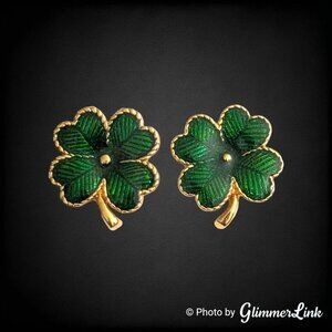 Vintage Avon Lucky Clover Earrings – Green Enamel Four Leaf Shamrock, 1990s