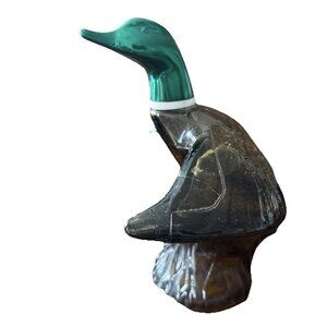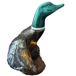 The Vintage Avon Mallard-In-Flight-Tai Winds Aftershave is a collectible decorative bottle made of green glass, measuring 6.5 inches in height and containing 5 fl oz. It is part of the Wildlife collection from Avon, representing a country style design from the late 20th century. With a turn lock closure and glossy finish, this original piece is unboxed and does not feature any customization or engraving. Made in the United States, this unique bottle is perfect for all occasions and is a nostalgic addition to any collection of vintage Avon products.