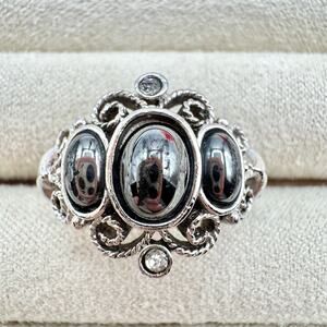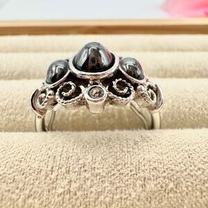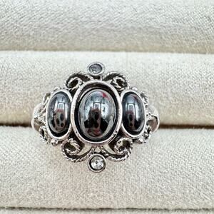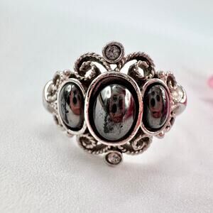 Vintage Avon Midnight Splendor Faux? Hematite Ring Crystals Opulent Ornate 1972
