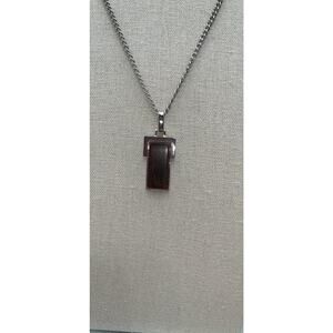 Vintage Avon Modernist Silver Tone Wooden Pendant Necklace