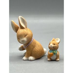 Vintage Avon "Mother's Love" Bunny Rabbit Figurines 1990s Brown Rabbits