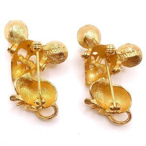 These charming vintage mouse brooches by Avon are crafted in a delightful gold-tone finish, featuring whimsical designs with moveable glasses. A nostalgic collectible set that evokes the playful artistry of costume jewelry from a bygone era, they capture the essence of whimsical fashion accessories that add character to any ensemble.