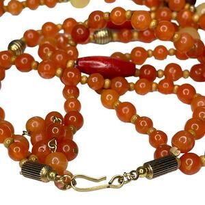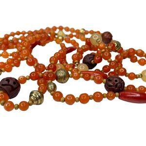 Vintage Avon Multi Strand Beaded Necklace Gold Tone with Orange and Cream