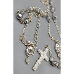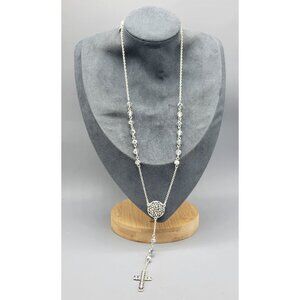 Vintage Avon NRQ Silver Tone Faceted Beaded Dangle Cross Chain Necklace N1D