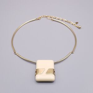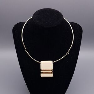 Vintage Avon Necklace Cream Pendant Gold Tone Bar Segments Links Chocker Signed