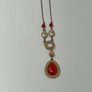 Vintage Avon Necklace Gold Tone Orange Drop and White Tan Beads