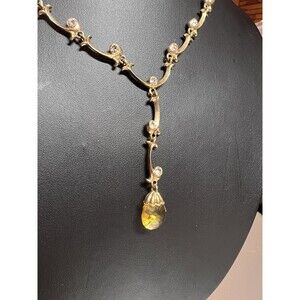 Vintage Avon Necklace Y-Drop Yellow Briolette Scalloped Gold Tone Chain 18"