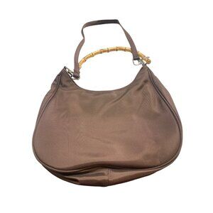 Elevate your everyday style with this chic hobo bag. Crafted from durable nylon, it features a unique bamboo handle and practical zippered compartment.