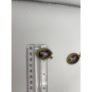 Vintage Avon Oval Embroider Rose Pierced Earrings Floral Goldtone