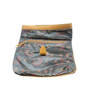 This vintage paisley print set offers a stylish and practical solution for carrying essentials. The tote is spacious for daily needs, while the matching clutch adds a touch of elegance for evenings or smaller items. Its tan faux leather accents enhance durability and aesthetic appeal.