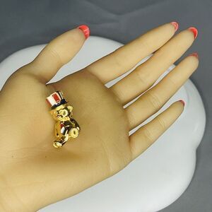 Vintage Avon Patriotic Red White Blue Flag Teddy Bear Lapel Pin Small