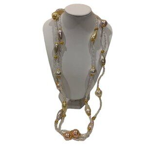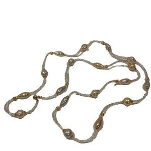Vintage Avon Pearly Pastel Necklace Opalescent Beaded Chain Long 1994