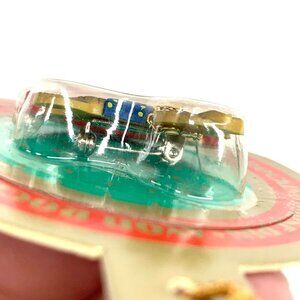 Sweet little vintage Avon holiday pin from 1985, featuring a brown rocking horse with gold reins and blue spotted saddle with red rocker. Pin is in original Holiday ornament case with golden thread to attach to a stocking or tree. Pin is approximately 1.25". New condition-never opened.