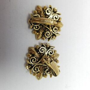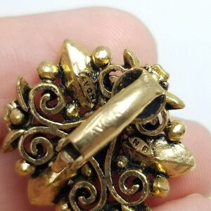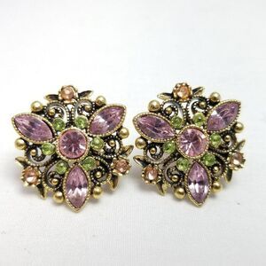 Vintage Avon Pink Green Rhinestone Clip On Earrings, Scroll Design, Estate