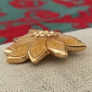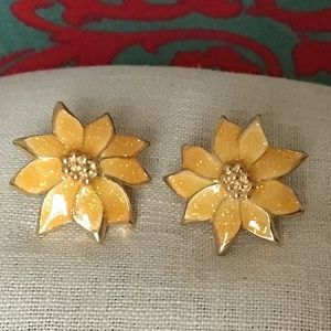Vintage Avon Poinsettia Earrings Gold Tone Glitter Enameled Pierced Signed