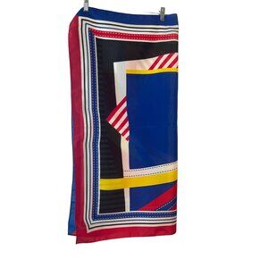 Vintage Avon Polyester 36 inch Scarf Red White Blue Yellow Black