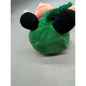 This charming vintage plush features a cheerful character dressed in festive attire, complete with a Santa hat and plaid scarf. The plush includes a trigger button that adds interactive fun. Crafted with soft materials, it's a delightful holiday decoration or gift.
