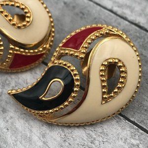 Vintage Avon red, white and blue earrings in a paisley shape. Gold-tone beading. Pierced. Like all Avon jewelry it's very well made.