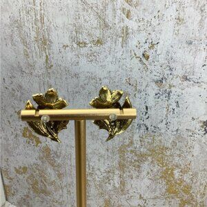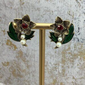 These exquisite Avon earrings showcases a captivating floral design, adorned with gold and green accents. The intricate metalwork and vibrant colors make it a standout piece, perfect for adding a touch of elegance to any ensemble. From 1992 and called Rich Christmas probably the most beautiful seasonal pieces Avon ever made. The pierced earrings are 1 and 1/2” long.