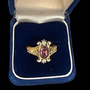 Vintage Avon Ring "Queensland" Gold Tone Purple Adjustable Signed