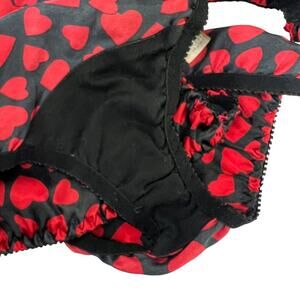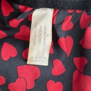 Vintage Avon Satin String Bikini Panties Red Hearts on Black Womens Size Large