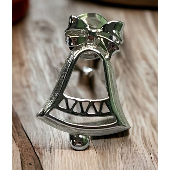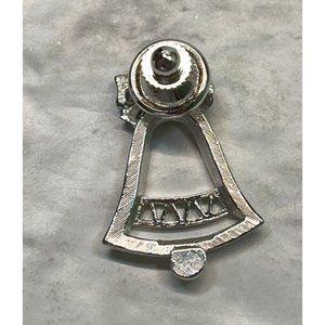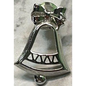 Vintage Avon Silver Bell Christmas Pin Brooch Silver Tone Bow