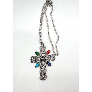 Vintage Avon Silver Tone Cross Pendant Necklace