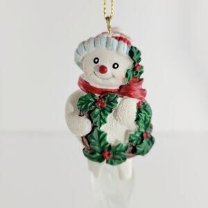 Vintage Avon Snowman with Wreath Icicle Christmas Ornament