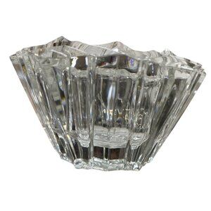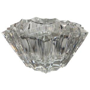 This timeless Avon glass votive holder features a striking starburst design that enhances its elegance. Suitable for candles or decorative use.