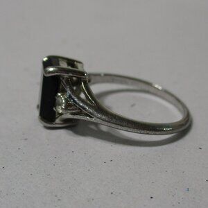 dark blue - black emerald - cut main stone with 2 CZ