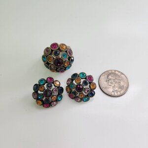 Vintage Avon Stone Earrings Matching Ring. Post Backs, Ring Approx 7-7.5 Size. Good Pre-Owned Condition