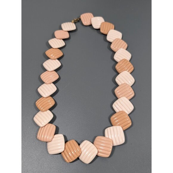Vintage Avon Summer Sands Tan Beige Cream Square Ribbed Necklace 17.5 in