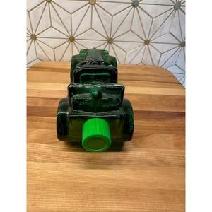 This vintage Avon Tai Winds Aftershave bottle is a must-have for collectors and classic car enthusiasts alike! Shaped like a vintage automobile, this green glass decanter still contains its original aftershave, making it a rare find. It features a green screw-on cap at the back, a detailed two-seater car design, and a partially intact original label on the bottom.