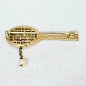 Vintage Avon Tennis Racket Brooch with Faux Pearl Tennis Ball