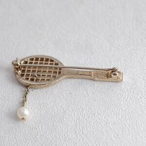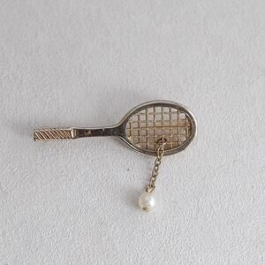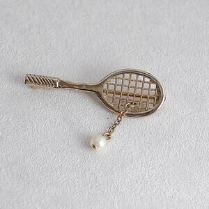 Vintage Avon tennis racket pin with faux pearl tennis ball attached