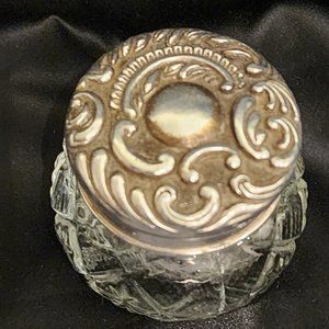 Vintage Avon Vanity Glass Jar with Silver Tone Metal Lid