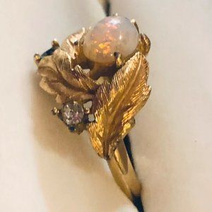 Vintage Avon Venetian Art Glass Faux Opal (1960s) Gold Ring