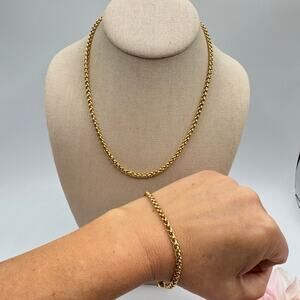 Vintage Avon Wheat Spiga Chain Necklace Bracelet Set Gold Tone 90s Like New Chic