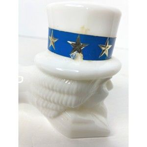 Vintage Avon Wild Country After Shave Ceramic Bottle. (Empty Bottle) 6 Length. This is a cool looking piece. It does need cleaning. The plastic blue tip has some scratches and surface wear. See pic The star stickers tape has an area where its lifted by the one star area. See pic The gold trim where it meets the white and the blue.. that area has some spots Overall i nice looking piece to add to your Avon bottle collection Please see all pics to see the condition of this item If you have any questions please message me. 6 x 3.5 Thanks again Ships fast